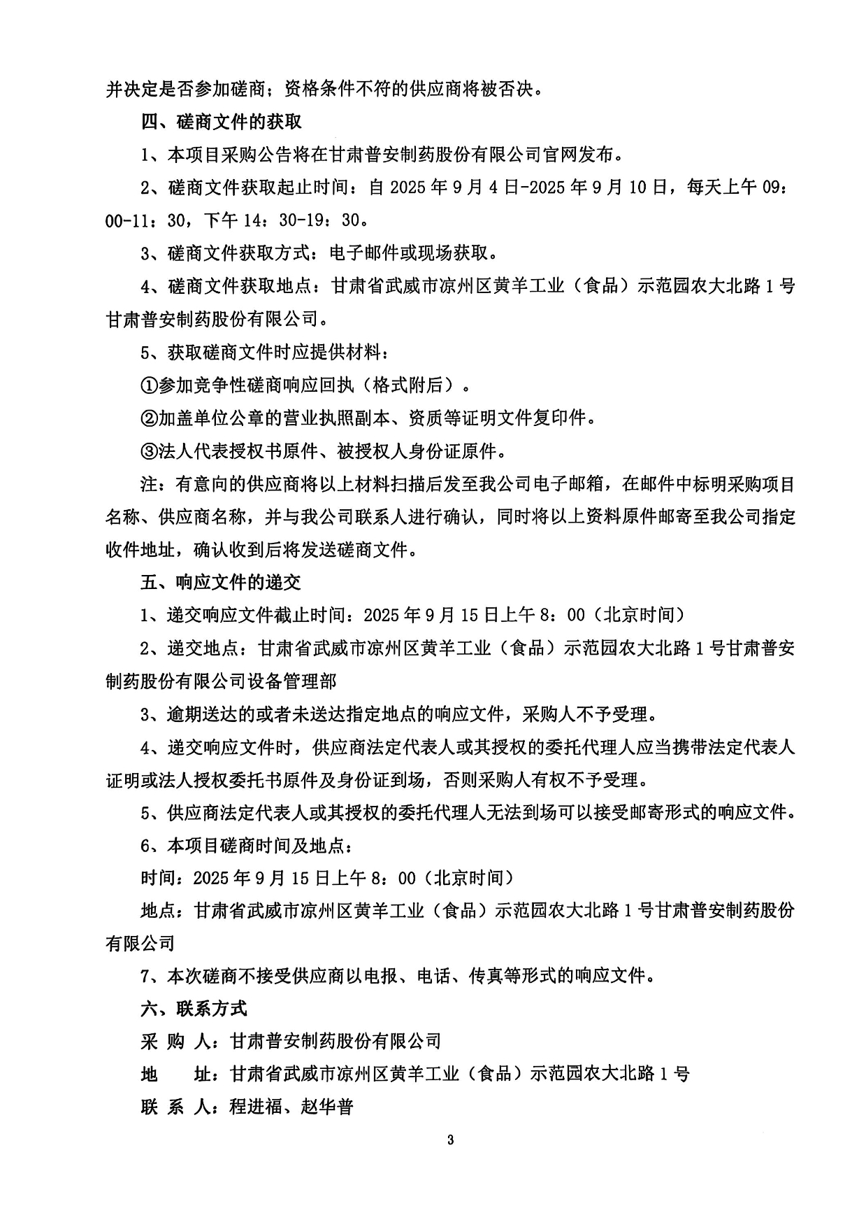 甘肅普安制藥股份有限公司三維裹包機(jī)設(shè)備采購競爭性磋商公告